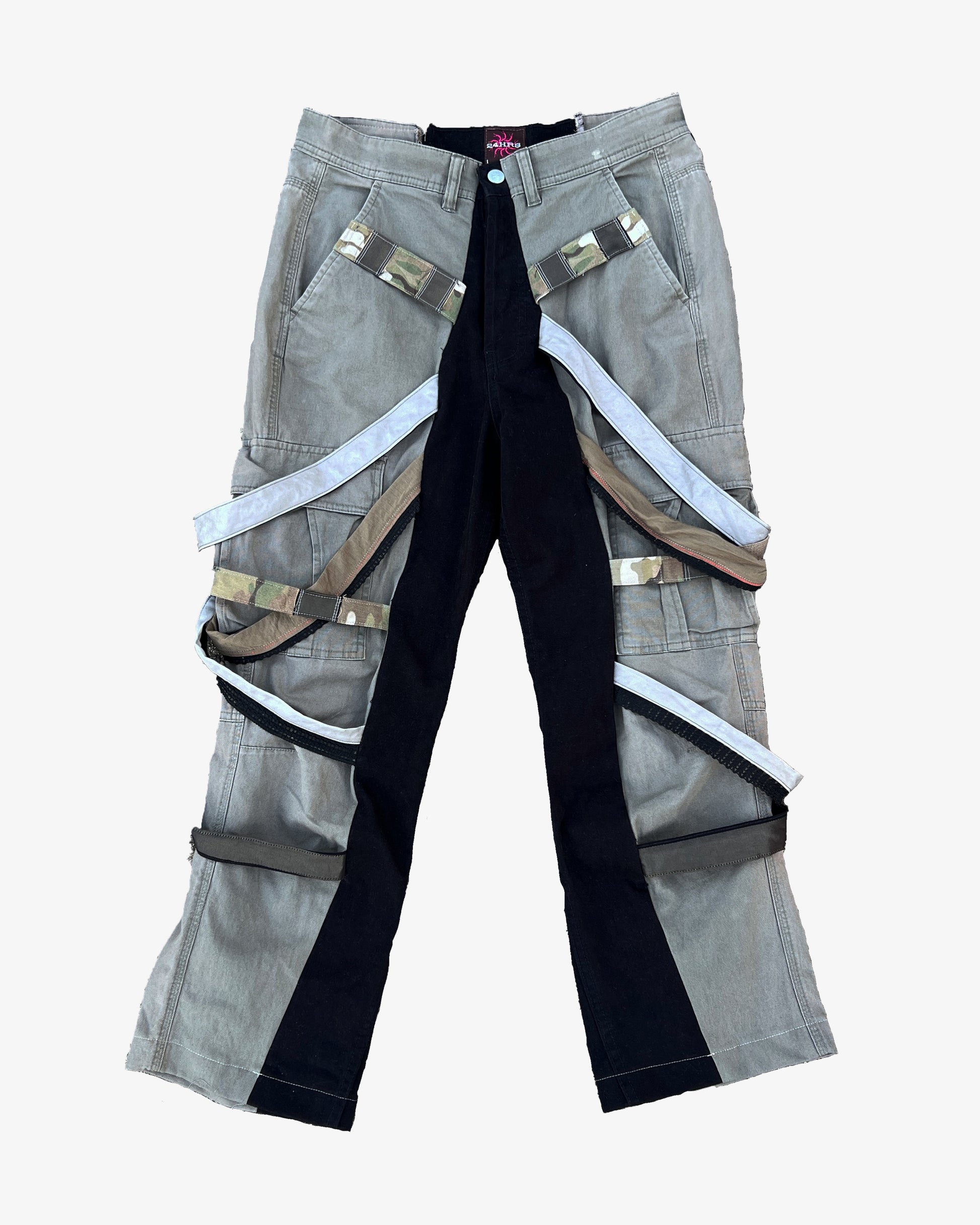 - STAPS MADE FROM LACE / OLIVE SATIN / CAMO COTTON DRILL / JERSEY